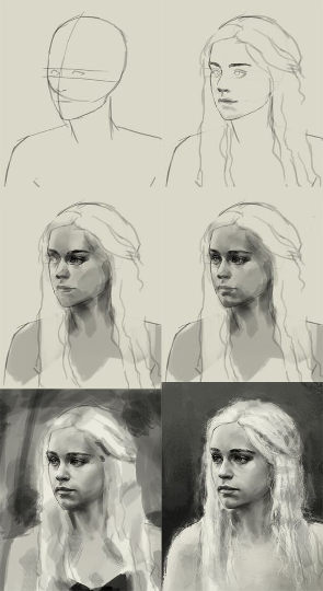 I found myself slipping back into the details and becoming frustrated many times when trying to accurately draw Emelia Clarke’s character, however, I kept reminding myself to not get hung up on the details and found that I was moving on very swiftly to the next portion of the artwork.
